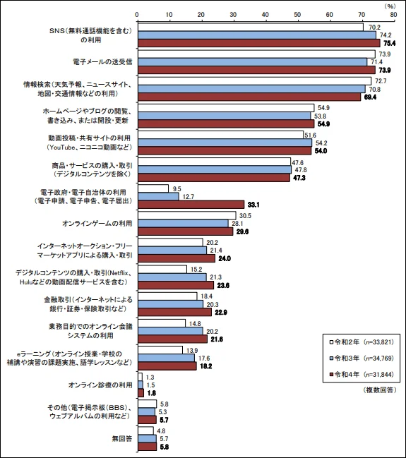 総務省の調査(令和4年)によると、なんと75%以上の人がSNSを使ってるってデータもあるの!📊